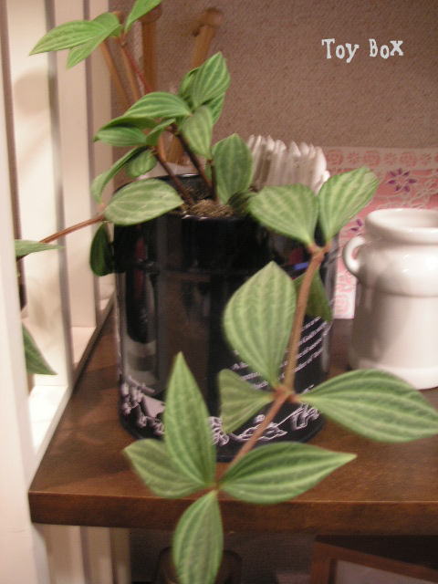 家の中に居る ペペロミアさんは縞々がお気に入り