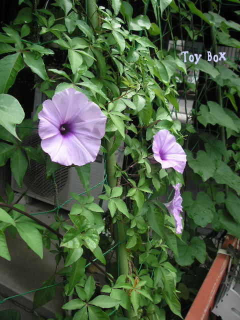 大分茂ってきましたぁ~グリーンカーテンの朝顔