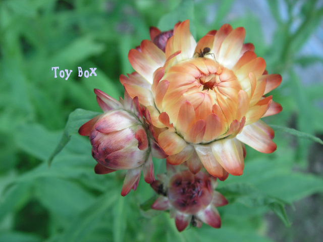 先日、同じヘクサリウムのハナカンザシのドライフラワーが水分を感じて瓶の中で